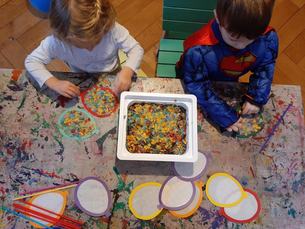 Fasnacht 2022 8. März 2022 Kindervilla Rosenrot Znünibrötli mal anders Smarties verzaubern Fasnachtsbastelei